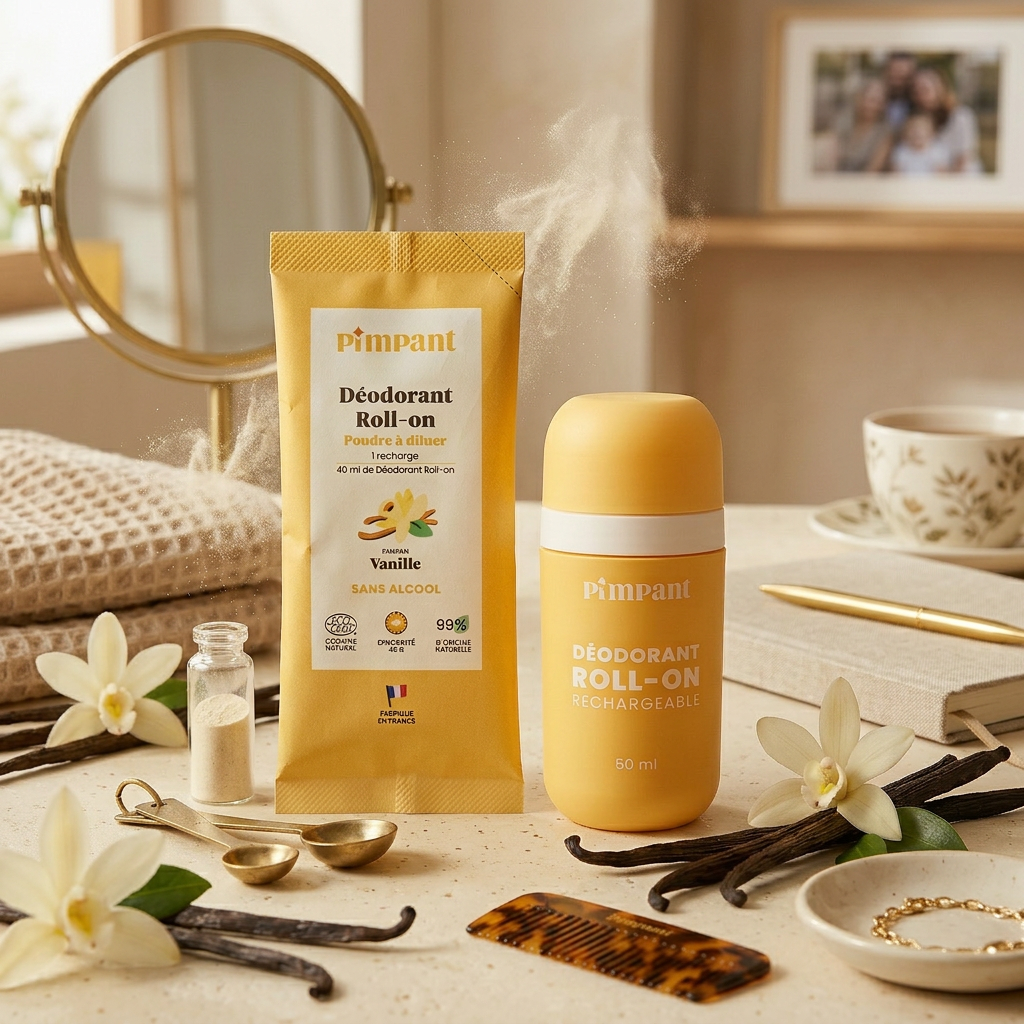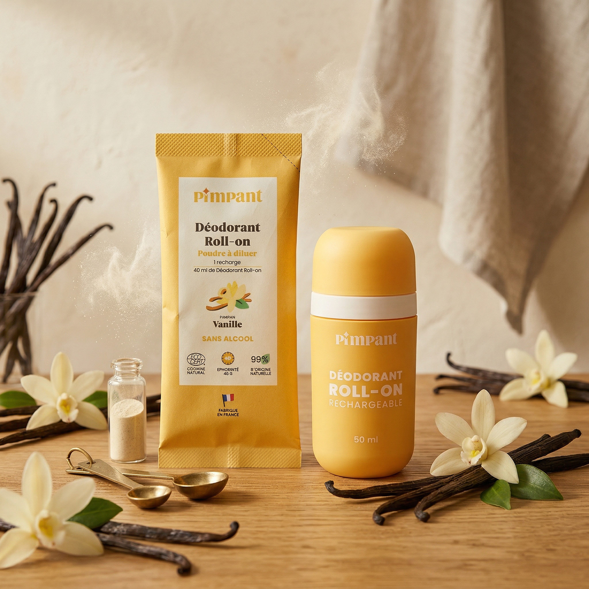 Le kit déodorant roll-on vanille Pimpant est une solution pratique pour une routine d’hygiène simple au quotidien.