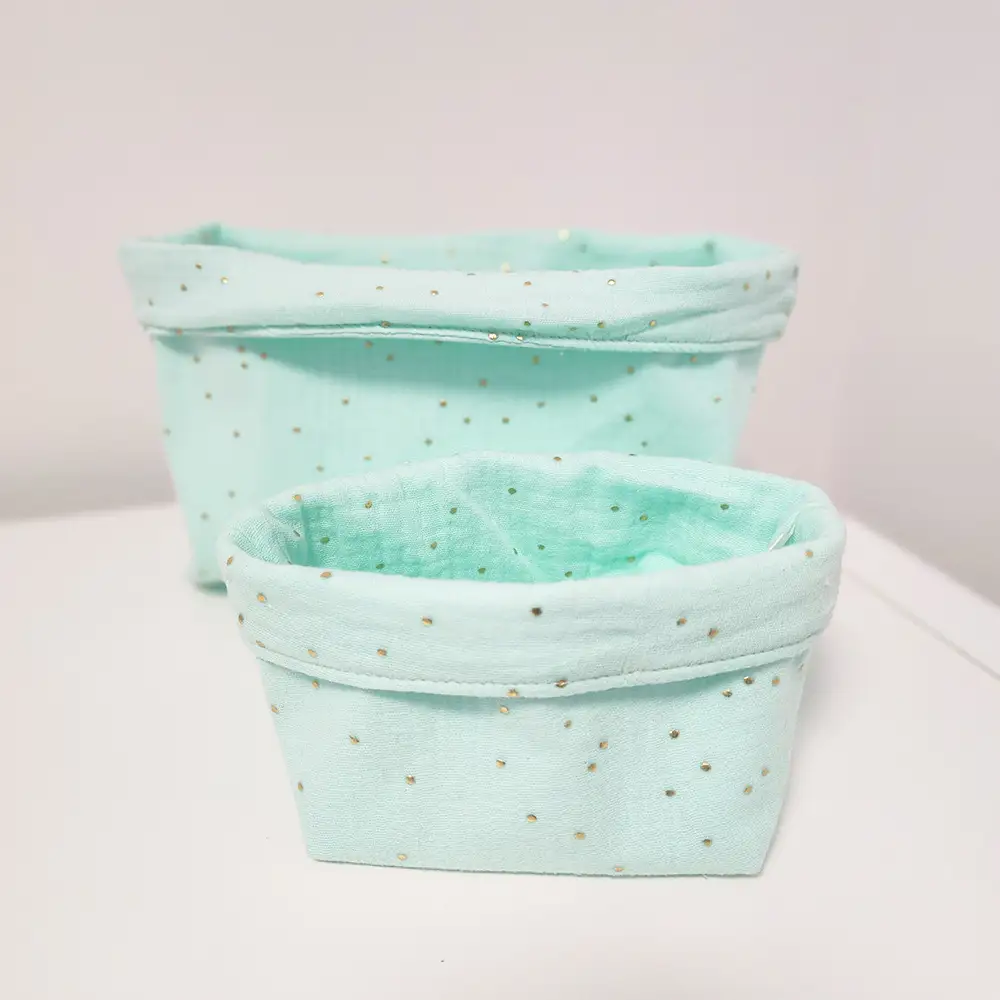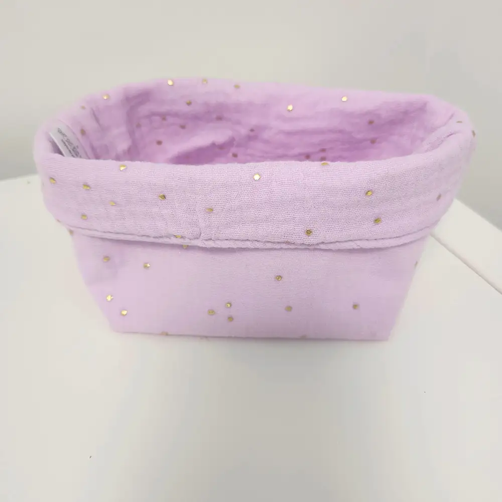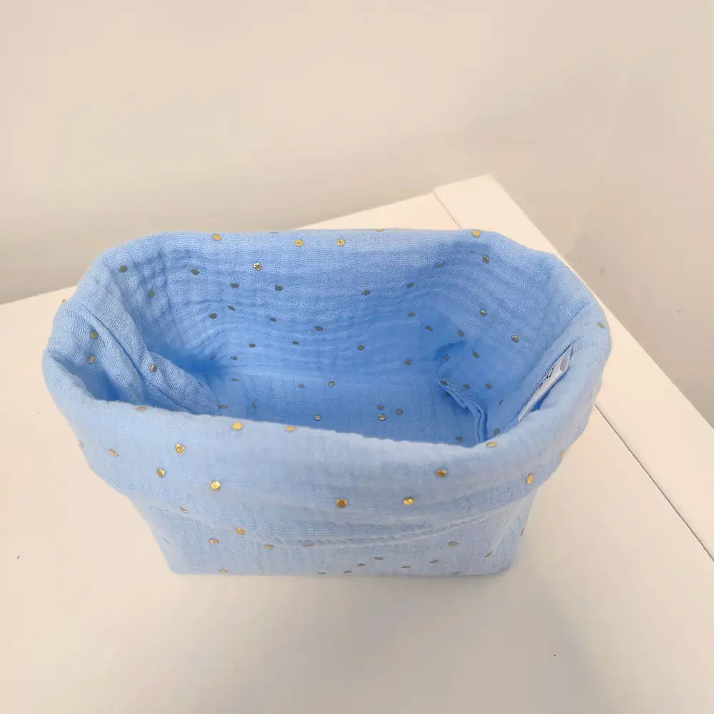 Conçue en gaze de coton douce, légère et élégante, cette panière format L offre un bel espace pour accueillir produits de beauté, accessoires de coiffure, flacons, lingettes, petits textiles ou tout autre objet que vous souhaitez ranger dans la salle de bain ou la chambre. Sa structure souple mais résistante lui permet de conserver sa forme tout en s’intégrant facilement à votre décoration.