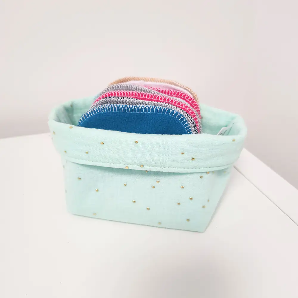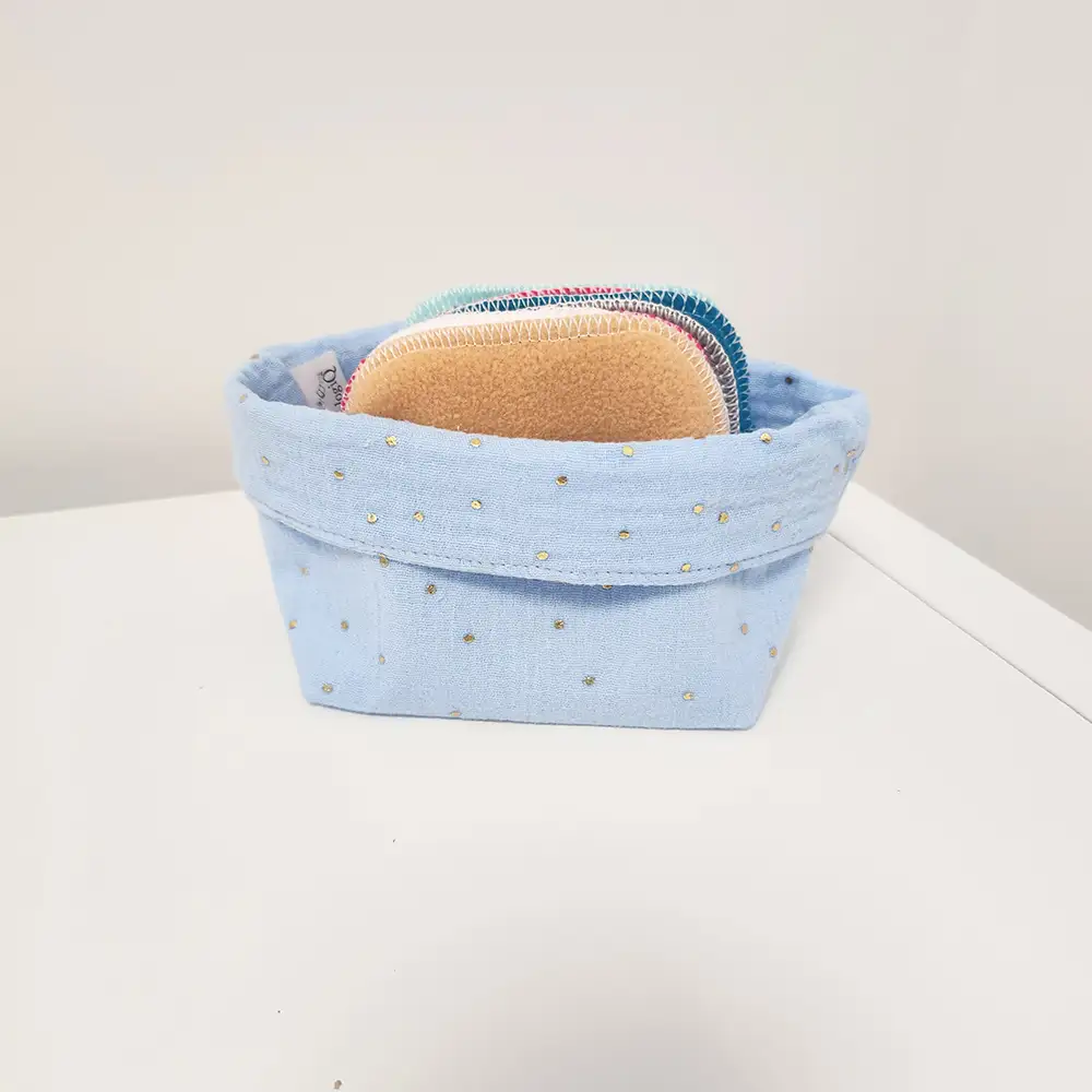 Transformez votre routine beauté avec notre panière en double gaz de coton, format S (10 × 14 × 10 cm). Élégante et pratique, elle est spécialement pensée pour organiser vos essentiels de salle de bain, ranger vos produits de maquillage ou structurer facilement votre coiffeuse. Son joli motif à pois dorés et ses coloris tendance apportent une véritable touche déco à votre espace.