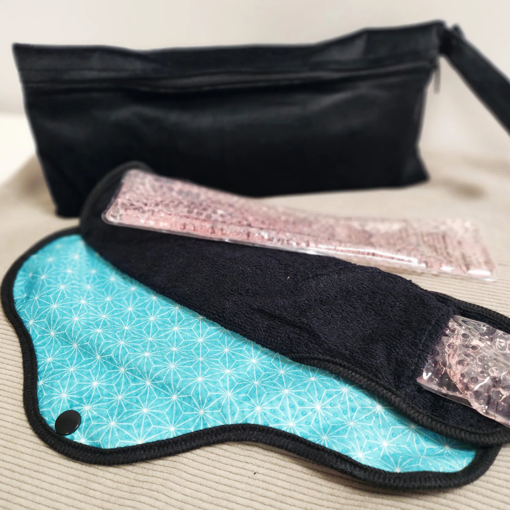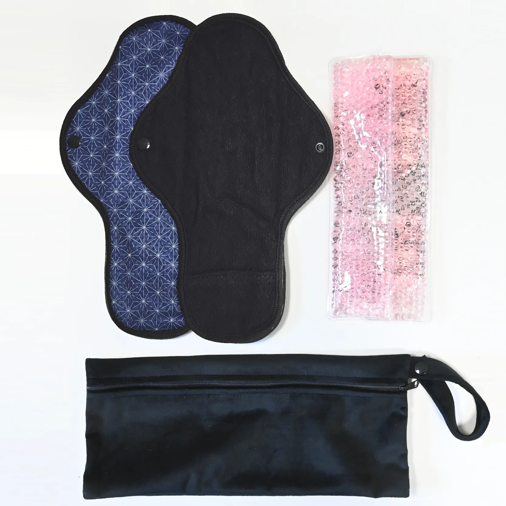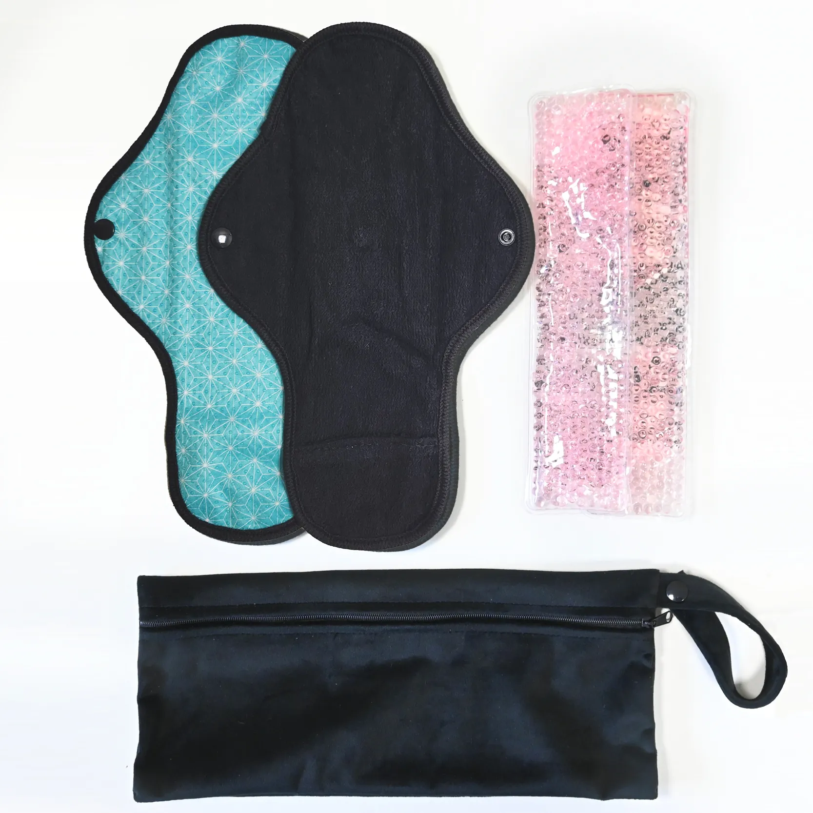 Règle douloureuse : 2 serviettes + 2 pads soulageant chaud / froid + 1 pochette